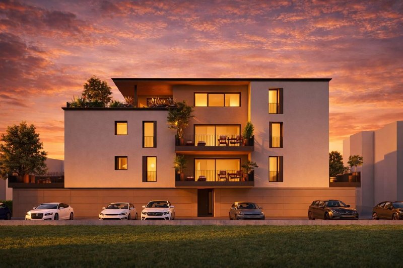 Le tonalità calde, avvolgenti e rassicuranti dello stabile si integreranno perfettamente con il verde circostante, creando un'armonia di colori che donerà un senso di serenità.