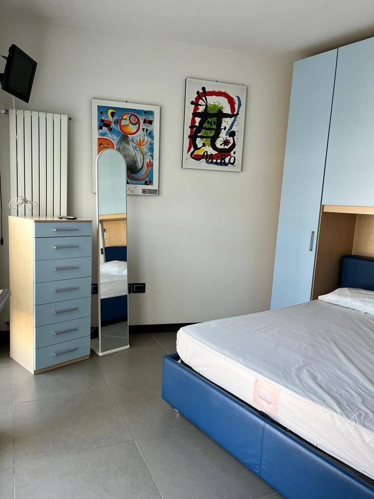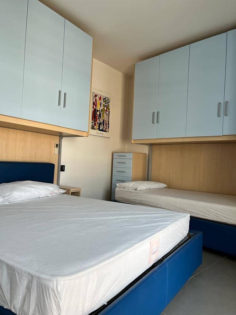 L'appartamento è composto da: soggiorno/angolo cottura con il divano letto, disimpegno, bagno con il box doccia, camera matrimoniale.