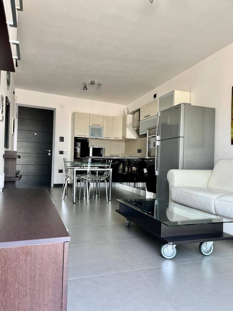 L'appartamento è composto da: soggiorno/angolo cottura con il divano letto, disimpegno, bagno con il box doccia, camera matrimoniale.
