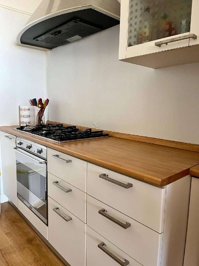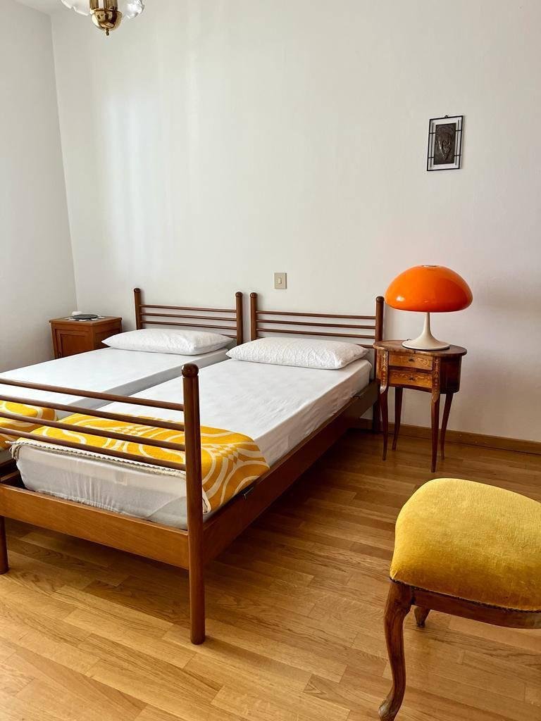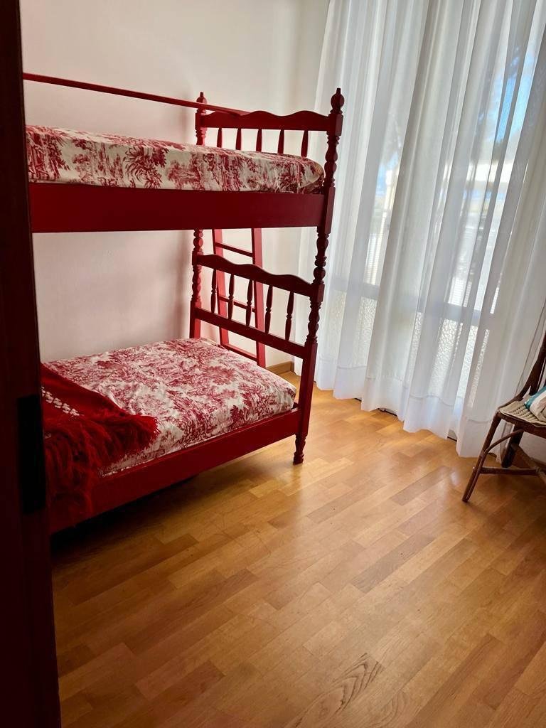 L'appartamento è composto da: ingresso, wc, soggiorno-pranzo, cucinotto, disimpegno, bagno con vasca, camera matrimoniale, seconda camera con due letti singoli, terza cameretta con il letto a castello.